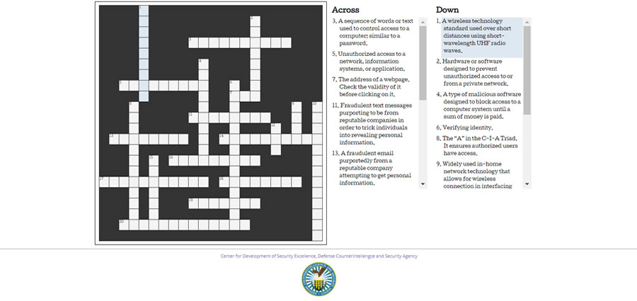 Are you familiar with Cyber Terms and Tech? Complete the online crossword puzzle to find out.