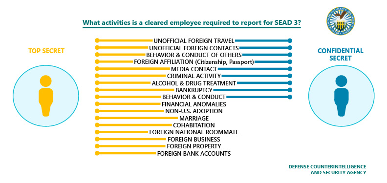 This could be your defining moment. The SEAD 3 was established and released as reporting requirements across the federal government for all "Covered individual" who have access to classified information or hold a sensitive position. Read the list below of "Covered Individuals" to see if your position with a defense contract company is considered a "Covered Individual":